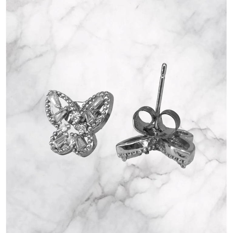 Aretes En Acero Plateados Diseño Mariposa Con Circones