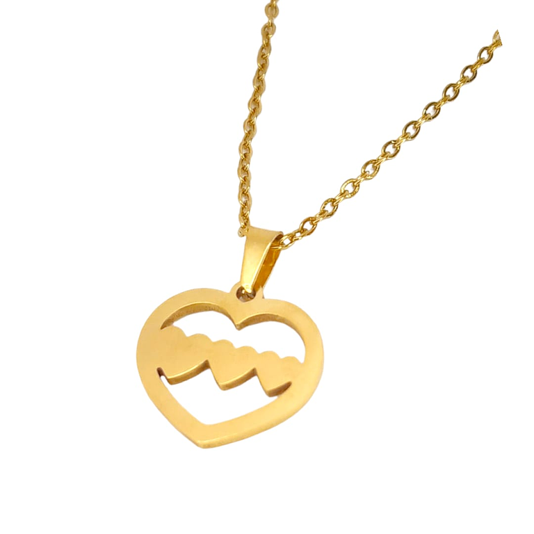 Juego de Aretes y Collar en Acero Diseño Tres Corazones