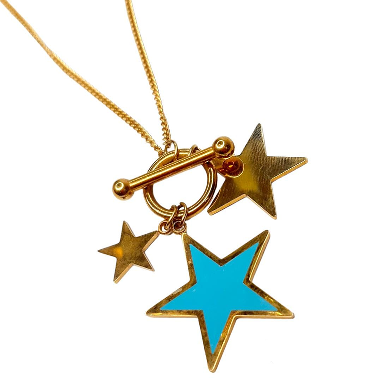 Juego de Aretes y Collar en Acero Diseño Trio de Estrellas Azul
