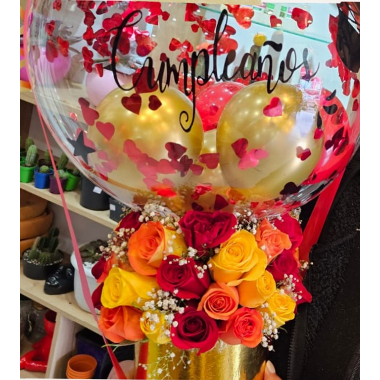 Creando asi un contraste armonioso que resalta las mejores cualidades de cada flor y un globo seleccionado de la mas altacalidad.